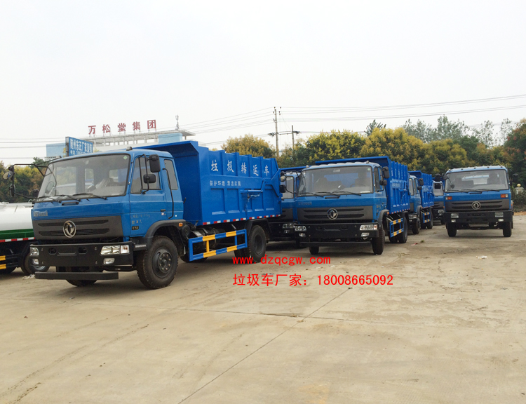 8輛東風(fēng)平頭壓縮對接垃圾車列隊(duì)出廠,該款對接垃圾車底盤可采用東風(fēng)145或153國四駕駛室,3950mm或4500mm軸距,對應(yīng)外形尺寸6850mm和7800mm,玉柴或康明斯國四發(fā)動(dòng)機(jī),250mm大梁,東風(fēng)6檔變速箱,前橋3.6噸,后橋9噸,9.00-20輪胎。