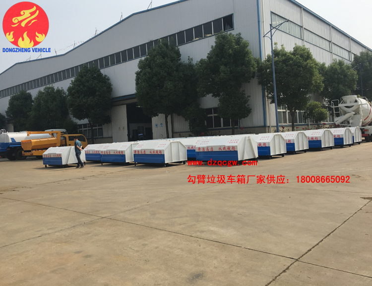 我公司生產(chǎn)的勾臂垃圾車采用高新設(shè)計(jì)可伸縮的鉤臂,實(shí)現(xiàn)垃圾廂的二次吊裝,自吊上放下,可自行傾倒垃圾。該車結(jié)構(gòu)簡單,操作穩(wěn)定方便,裝卸效率高,機(jī)械化程度高,節(jié)省人力。一車可帶多個大廂,在裝卸的運(yùn)輸過程中可有效地避免二次污染。