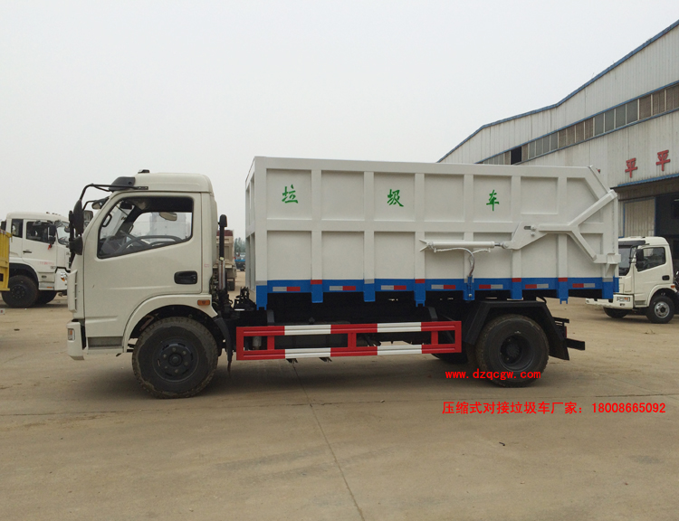 底盤說明:東風(fēng)多利卡國五單排可翻轉(zhuǎn)駕駛室,3800mm軸距,多種可選國五發(fā)動機,6檔變速箱,7.50R16鋼絲胎,ABS,方向助力,斷氣剎。 組成部分:國內(nèi)知名品牌東風(fēng)原裝底盤(全國聯(lián)保)、箱體(密封式)、取力器、多路換向閥、液壓系統(tǒng)、操作系統(tǒng)等組成。車廂:采用16號低合金槽鋼與優(yōu)質(zhì)碳鋼鋼板全密封焊接而成,用8組連接板與專用車底盤大梁連成一體,設(shè)計美觀、結(jié)構(gòu)合理,裝卸方便。 進(jìn)料結(jié)構(gòu):壓縮垃圾站將垃圾壓縮成塊后將垃圾塊垂直舉起,并打開壓縮箱排泄門,這時垃圾車箱體后門向上旋轉(zhuǎn)開啟,垃圾車后門與壓縮箱后門對接,之后垃圾塊被壓縮箱內(nèi)的推板水平推進(jìn)到垃圾車箱體內(nèi),完成垃圾裝載后關(guān)閉垃圾車后門,將垃圾運到垃圾處理地進(jìn)行傾卸。 卸料結(jié)構(gòu):系用箱卸料,由兩只液壓油缸直接舉升車廂進(jìn)行卸料,箱底與地面夾角不小于45度,以實現(xiàn)垃圾依靠自重能自行卸下的專用自卸運輸車。 液壓系統(tǒng):由油箱、油泵、多路換向閥、液壓缸、濾油器和管路組成,該系統(tǒng)能實現(xiàn)裝卸垃圾的各種專用功能。 操作系統(tǒng):通過該系統(tǒng)可以實現(xiàn)各功能的轉(zhuǎn)換。通過操縱多路換向閥的手柄可完成裝料和卸料工作。(在操作多路換向閥時應(yīng)掛上取力器帶動油泵工作) 主要特點:垃圾收集方式簡便、高效.環(huán)保性好(不產(chǎn)生二次污染),整車?yán)眯矢,質(zhì)量可靠,故障率低,維護(hù)方便,運行費用低等特點。 |