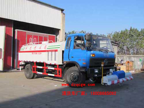 底盤說明:東風153豪華內飾,4500mm軸距,寬體保險杠,電動玻璃,法斯特小八檔變速箱,玉柴或康機發(fā)動機,300雙層大梁(局部三層),前橋5噸,后橋10噸,加厚鋼板9.00-20,動力轉向,斷氣剎。罐體有效容積:8.0立方米。 改裝部分:康明斯160馬力副發(fā)動機,高壓水泵(前置道路清洗支架/前沖/中置高壓清洗槍/后高低2套噴霧(21+16不銹鋼噴嘴)/18米沖洗水槍);威龍低壓泵(前沖/后灑/綠化高炮);控制開關;氣動系統(tǒng) ;尾部LED箭頭燈。清洗寬度:3.5米;清洗壓力10Mpa;高壓沖洗高度≧21米。選裝前后灑水管道。 |