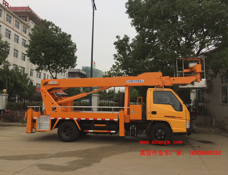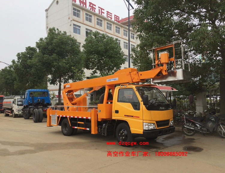 公司江鈴單排國五17米高空作業(yè)車出廠,該車采用江鈴順達單排駕駛室,3360mm軸距,江鈴115馬力柴油國五發(fā)動機,五檔變速箱,前橋1.5噸,后橋3噸,油,帶排氣制動,7.00R16LT鋼絲胎。