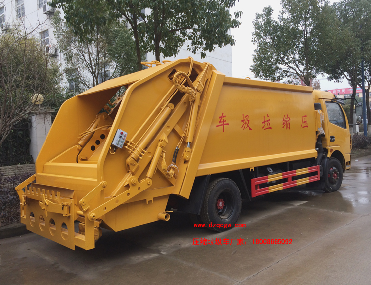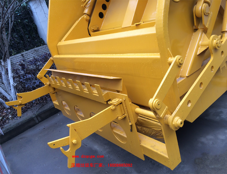 廂體材料為武鋼優(yōu)質(zhì)炭鋼,厚度為邊5mm,廂體容積為7-8立方米。由裝料機(jī)構(gòu)、壓縮機(jī)構(gòu)、卸料機(jī)構(gòu)、油泵、油箱、控制閥等組成的液壓機(jī)構(gòu)組成。裝料機(jī)構(gòu)由支架、連桿機(jī)構(gòu)、凸輪、掛鉤等組成,在油缸作用下,將垃圾桶內(nèi)的垃圾自動(dòng)翻轉(zhuǎn)倒入料斗內(nèi)。新款有9支液壓缸制動(dòng),不帶副壓板,液壓控制操作系統(tǒng)為電動(dòng)控制和手動(dòng)控制。