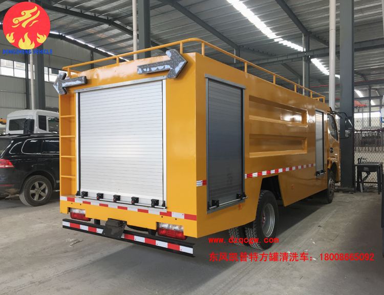 國五東風凱普特K7清洗車出廠,區(qū)別于以往的清洗車,該車型的罐體為方罐,配備天津雙耀高壓清洗泵,流量為170L/min。采用東風凱普特K7國五底盤,3800mm軸距,康機141馬力發(fā)動機,鋼絲胎帶ABS。罐體有效容積為6個方。