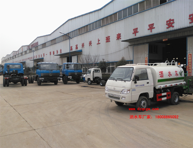 底盤(pán)說(shuō)明:福田小卡之星I,單排1550車(chē)身駕駛室,5檔變速箱,2300mm軸距,6.00-14輪胎,3噸后橋,動(dòng)力轉(zhuǎn)向,鼓式液壓制動(dòng)、140大梁、天窗。罐體有效容積1.5立方米。 專(zhuān)用功能:該多功能灑水車(chē)適合于各種路面的灑水、噴霧、降溫、除塵、沖洗塵埃臟物,亦可用于園林綠化、市政環(huán)衛(wèi)、路面養(yǎng)護(hù)及應(yīng)急消防、運(yùn)輸飲用水等。專(zhuān)用部分由罐體、水泵、球閥、輸水管道、灑水裝置等部件組成。水泵、取力箱、球閥均為國(guó)家定型產(chǎn)品,具有性能良好,工作可靠、壓力高、流量大、油耗低等特點(diǎn)。 改裝部分:標(biāo)配前沖、后灑、側(cè)噴、工作平臺(tái)、綠化高炮、自流閥、消防接口,輸水管3米2根,8噸以上罐體帶高位花灑2個(gè),億豐泵或金龍泵,控制方式為手動(dòng)。選裝氣動(dòng)閥門(mén)控制;高位花灑,大鴨嘴,藥盤(pán),罐體側(cè)面加裝萬(wàn)向可調(diào)節(jié)噴頭,罐體后部壓塵噴灑裝置,兩個(gè)圓警燈或長(zhǎng)警燈,LED箭頭燈,泵可選裝威龍泵或農(nóng)藥噴霧裝置。 |