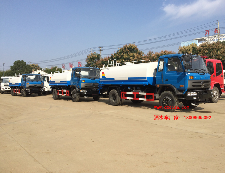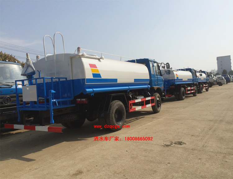底盤說明:153豪華駕駛室,軸距4500mm或4700mm,4950mm,康機或玉柴國四發(fā)動機,大同6檔變速箱,5t前橋/10t后橋,10.00尼龍?zhí),車?50雙層。罐體有效容積:9.97立方米。帶免征。 專用功能:該多功能灑水車適合于各種路面的灑水、噴霧、降溫、除塵、沖洗塵埃臟物,亦可用于園林綠化、市政環(huán)衛(wèi)、路面養(yǎng)護及應(yīng)急消防、運輸飲用水等。專用部分由罐體、水泵、球閥、輸水管道、灑水裝置等部件組成。水泵、取力箱、球閥均為國家定型產(chǎn)品,具有性能良好,工作可靠、壓力高、流量大、油耗低等特點。 改裝部分:標(biāo)配前沖、后灑、側(cè)噴、工作平臺、綠化高炮、自流閥、消防接口,輸水管3米2根,8噸以上罐體帶高位花灑2個,億豐泵或金龍泵,控制方式為手動。選裝氣動閥門控制;高位花灑,大鴨嘴,藥盤,罐體側(cè)面加裝萬向可調(diào)節(jié)噴頭,罐體后部壓塵噴灑裝置,兩個圓警燈或長警燈,LED箭頭燈,泵可選裝威龍泵或農(nóng)藥噴霧裝置。 |