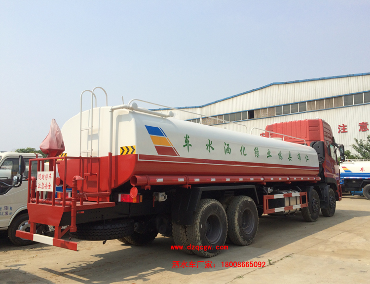底盤說明:東風(fēng)天龍前四后八D310平頭標(biāo)準(zhǔn)頂駕駛室,國四康機270馬力發(fā)動機,軸距1850+4350+1350mm,11.00-20尼龍?zhí),陜齒9檔變速箱,7噸雙前橋,10噸單減后橋,前橋盤式制動,ECU限速,帶ABS,行車記錄儀。罐體有效容積:19.8立方米。運輸介質(zhì):水。帶免征。 專用功能:該多功能灑水車適合于各種路面的灑水、噴霧、降溫、除塵、沖洗塵埃臟物,亦可用于園林綠化、市政環(huán)衛(wèi)、路面養(yǎng)護及應(yīng)急消防、運輸飲用水等。專用部分由罐體、水泵、球閥、輸水管道、灑水裝置等部件組成。水泵、取力箱、球閥均為國家定型產(chǎn)品,具有性能良好,工作可靠、壓力高、流量大、油耗低等特點。 改裝部分:標(biāo)配前沖、后灑、側(cè)噴、工作平臺、綠化高炮、自流閥、消防接口,輸水管3米2根,8噸以上罐體帶高位花灑2個,億豐泵或金龍泵,控制方式為手動。選裝氣動閥門控制;高位花灑,大鴨嘴,藥盤,罐體側(cè)面加裝萬向可調(diào)節(jié)噴頭,罐體后部壓塵噴灑裝置,兩個圓警燈或長警燈,LED箭頭燈,泵可選裝威龍泵或農(nóng)藥噴霧裝置。 |