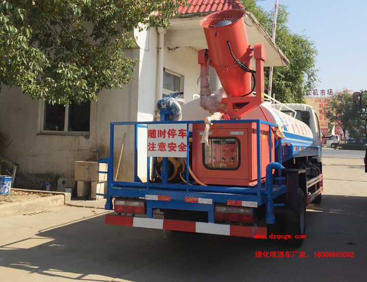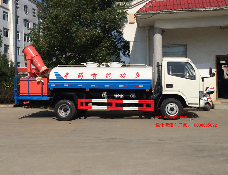 底盤說明:新款單排可前翻白色駕駛室,東風(fēng)5檔變速箱,朝柴95馬力,軸距3300mm,7.00-16 原廠尼龍?zhí)ィ?T前橋,3.5T后橋,氣制動(dòng)。罐體有效容積:3.67立方米。 專用功能:主要使用于園林綠化,道路綠化帶維護(hù),森林維護(hù),農(nóng)田打藥,果園打藥等。運(yùn)輸各種農(nóng)藥,利用風(fēng)機(jī)原理來達(dá)到霧化及噴灑農(nóng)藥的最優(yōu)效果。 改裝部分:裝配工作平臺(tái),安裝農(nóng)藥噴灑專用炮及綠化灑水炮(若有特殊要求還可安裝消防灑水車的消防灑水泵),送藥筒可360度全方位的旋轉(zhuǎn),以便各種角度的農(nóng)作物及植物都能受益。在工作平臺(tái)尾部配備專用小發(fā)動(dòng)機(jī)組,為農(nóng)藥噴灑炮提供專一的動(dòng)力源來達(dá)到更好的霧化效果,射程可達(dá)到45米,為各種工作環(huán)境下的作業(yè)提供有效的保障。配備專用灑水泵及灑水系統(tǒng),可抽水排水,也可通過消防栓進(jìn)水。 |