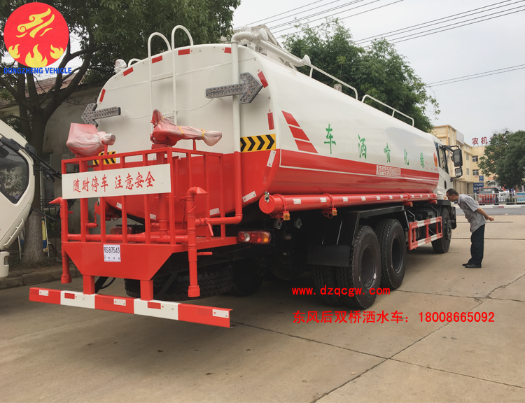 底盤說明:東風(fēng)153新款駕駛室,4350+1300mm軸距,國五康機或康機發(fā)動機,10.00-20尼龍?zhí),前?噸,后橋10噸,陜齒小八檔變速箱。斷氣剎,方向助力,ABS,帶下防護。罐體有效容積:19立方米。運輸介質(zhì):丙酮水溶液,帶免征。 專用功能:該多功能灑水車適合于各種路面的灑水、噴霧、降溫、除塵、沖洗塵埃臟物,亦可用于園林綠化、市政環(huán)衛(wèi)、路面養(yǎng)護及應(yīng)急消防、運輸飲用水等。專用部分由罐體、水泵、球閥、輸水管道、灑水裝置等部件組成。水泵、取力箱、球閥均為國家定型產(chǎn)品,具有性能良好,工作可靠、壓力高、流量大、油耗低等特點。 改裝部分:標(biāo)配前沖、后灑、側(cè)噴、工作平臺、綠化高炮、自流閥、消防接口,輸水管3米2根,8噸以上罐體帶高位花灑2個,億豐泵或金龍泵,控制方式為手動。選裝氣動閥門控制;高位花灑,大鴨嘴,藥盤,罐體側(cè)面加裝萬向可調(diào)節(jié)噴頭,罐體后部壓塵噴灑裝置,兩個圓警燈或長警燈,LED箭頭燈,泵可選裝威龍泵或農(nóng)藥噴霧裝置。 |