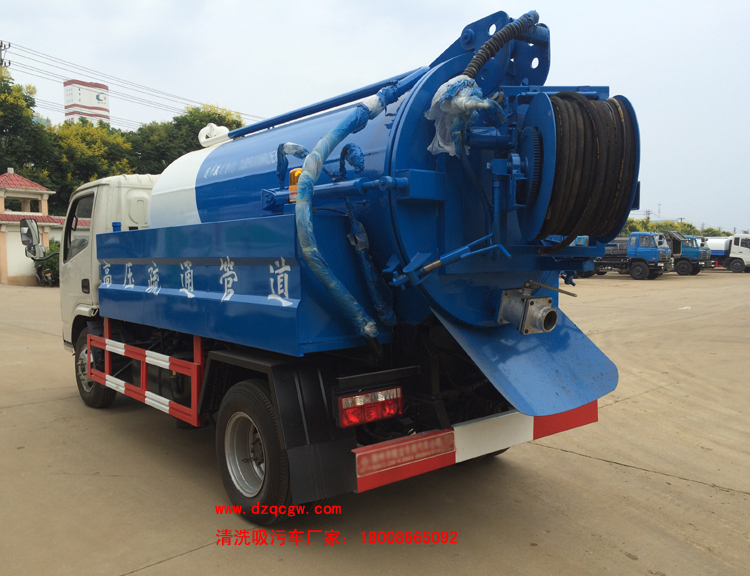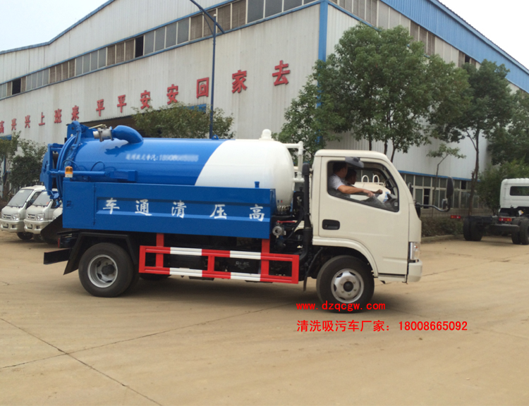 底盤說明:東風(fēng)福瑞卡國五單排可翻轉(zhuǎn)駕駛室,3308mm軸距,多種可選國五發(fā)動機(jī),5檔變速箱,前橋2噸,后橋4噸,7.00R16鋼絲胎,方向助力,ABS,空調(diào),中控鎖,電動門窗。吸污罐體有效容積:1.9立方米,水罐罐體有效容積:1.5立方米。 清洗部分主要配備:意大利進(jìn)口16Mpa高壓泵。國產(chǎn)配套件液壓 驅(qū)動系統(tǒng),60米19mm高壓軟管,液壓驅(qū)動卷盤,碳鋼噴頭(10個(gè)),夾心取力器,罐體形狀為圓罐,手動操作。主要用于清洗城市下水道、管道的沉積物、死角泥溝的疏通。也可用于清洗工業(yè)排液管道、壁面等,緊急時(shí)可用于救火。 吸污部分主要配備:國產(chǎn)多路閥、油缸;國產(chǎn)高質(zhì)量真空泵,油水分離器,四通閥,洗手裝置。罐體后封頭球閥控制自流口1個(gè),1個(gè)視污窗,1根7米吸糞管,普通油漆。一次性成型舉升式罐體,罐體兩則油缸,后蓋液壓開啟,機(jī)械鎖緊,帶液位報(bào)警。主要用于下水道、雨水井、檢查井、化糞池及各種溝渠內(nèi)的污泥、糞便或石油化工廠污水池淤積物的抽吸、裝運(yùn)和排卸。 P.S:水罐和吸污罐為兩個(gè)獨(dú)立罐體,清洗功能時(shí)用水罐,吸污功能時(shí)用吸污罐,清洗吸污兩種功能不同時(shí)使用?杉友b灑水裝置,選裝低水位報(bào)警裝置。 |